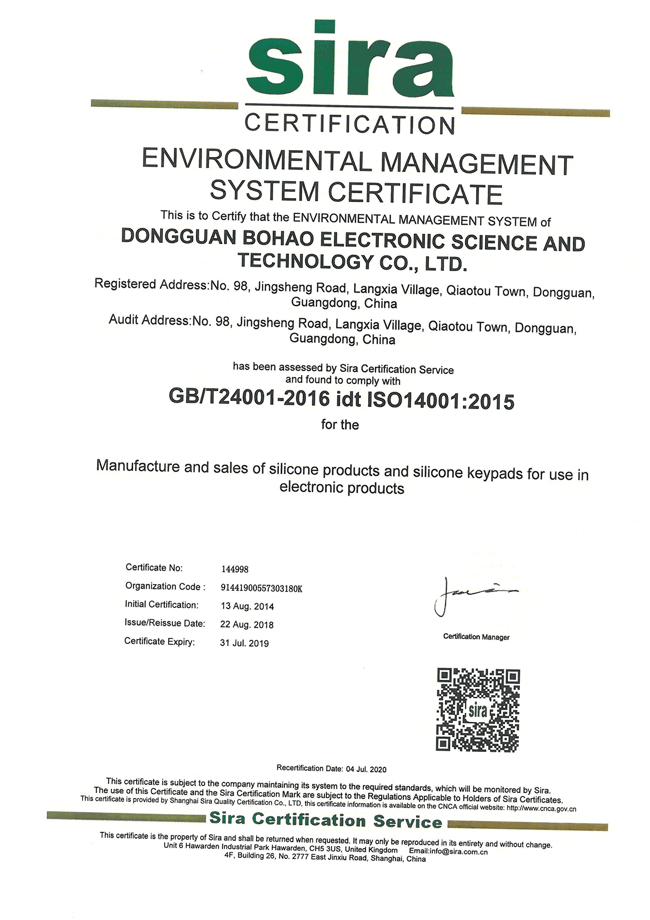 ISO14001:2015環(huán)境管理體系認(rèn)證英文證書