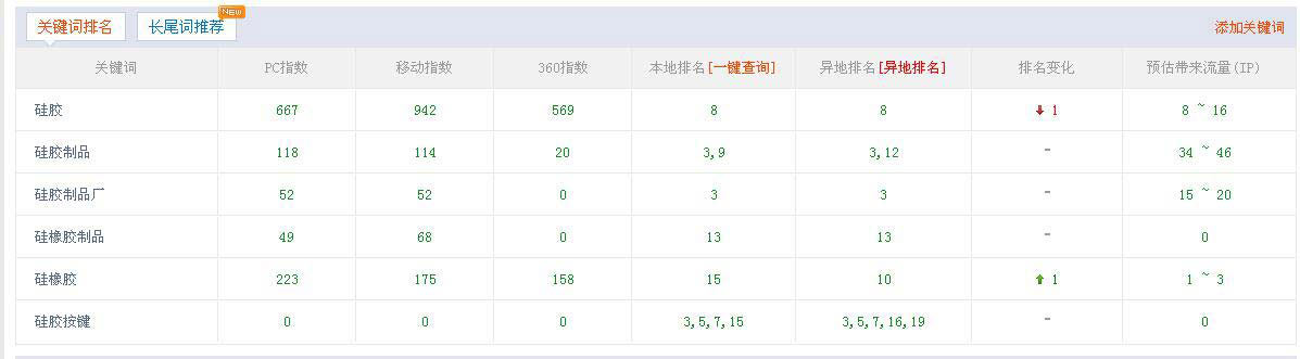 “硅膠制品、硅橡膠制品、硅膠制品廠、硅膠按鍵”是我們博皓核心產(chǎn)品關(guān)鍵詞,同時也是百度指數(shù)比較高的一些關(guān)鍵詞。說到這里小編就額外說一句,網(wǎng)站優(yōu)化的定位很重要,如果定位錯了,后續(xù)再努力也是沒有辦法將權(quán)重提升至3的。