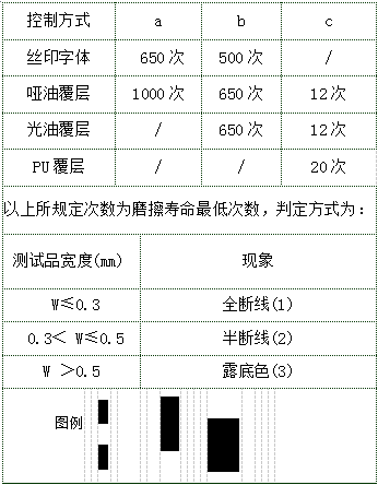 a、橡皮磨擦機(jī)橡皮磨擦,使用硬度為50°的專用橡皮,500g荷重,速率 55-60次/分鐘,移動距離25mm/次。