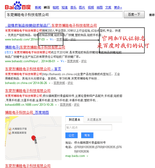 1、找到他們的官方網(wǎng)站,如:東莞市博皓電子科技有限公司的官方網(wǎng)站網(wǎng)址就是http://m.sydafoundation.net,網(wǎng)址后面后又一個(gè)大V,這個(gè)是百度對(duì)這家公司網(wǎng)站的一個(gè)認(rèn)證標(biāo)志。