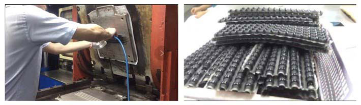 這款檢測筆硅膠按鍵要生產起來還是存在一些難點的,首先是它的模具采用了拋光處理,在油壓成型的時候,只能噴很少的脫模劑,加之弧形結構和新模的緣故所以一開始脫模非常困難。經過工程和油壓技術技術同事的多次調整,一方面是在不影響產品尺寸的情況下均勻的補一點料以增加毛邊厚度,另一方面通過洗模和遠距離噴少量脫模水來降低硅膠對鋼模的吸附性,后借助氣槍和脫模時手上的巧勁終于實現了完整的脫下一整模。