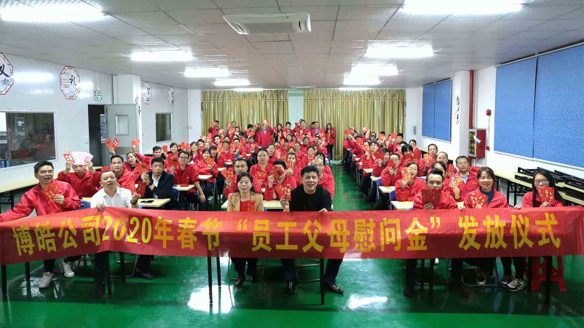 春節(jié)將至,博皓電子生產(chǎn)硅膠按鍵一線還是熱火朝天的加班中,2020年1月14日,雖然我們今年忙得年前沒(méi)有時(shí)間召開年會(huì),但我們一年一度的博皓電子員工父母慰問(wèn)金及差旅費(fèi)發(fā)放儀式提前舉行。吳建議總經(jīng)理、盧柳林副總經(jīng)理、宗標(biāo)副總經(jīng)理、各分管經(jīng)理主管及全體員工共150余人參加本次活動(dòng)。