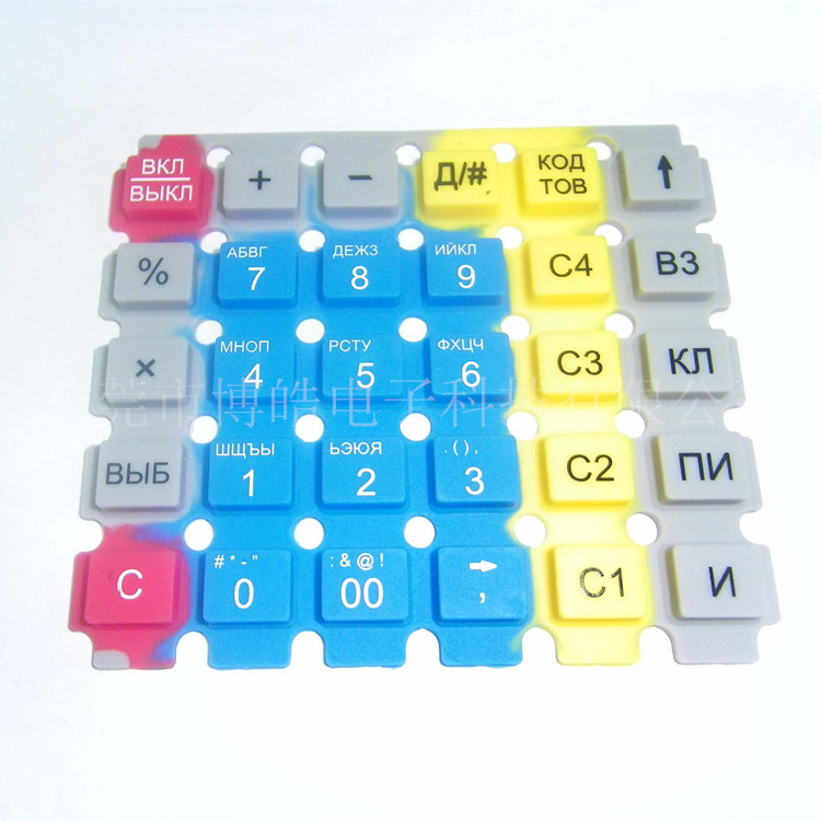 - 產(chǎn)品簡介:硅膠計(jì)算器按鍵產(chǎn)品包括硅膠按鍵中需要的所有按鍵工藝制作,博皓電子的硅膠按鍵制作工藝包含硅膠按鍵成型,硅膠按鍵多色絲印,噴涂硅膠色油,鐳雕鐳射按鍵,硅膠沖型按鍵,噴消光保護(hù)油按鍵,噴PU按鍵等工藝。