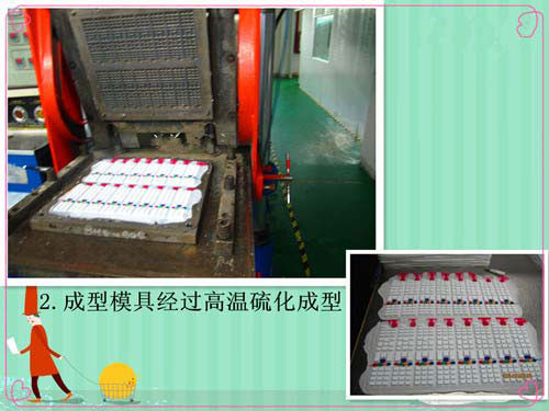2.用已經(jīng)開好的硅膠模具進行硅膠原材料的高溫高壓硫化成型,如圖: