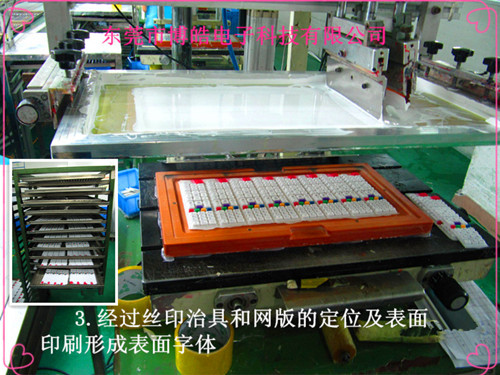 3.采用全自動氣壓跑臺式絲印機器印刷表面字符,如圖: