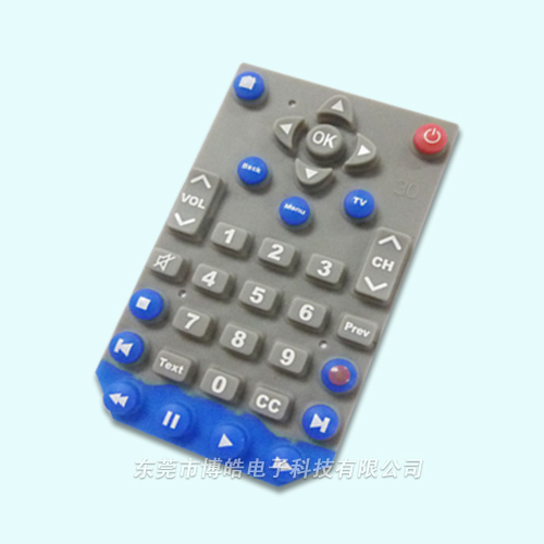 - 產(chǎn)品簡(jiǎn)介:該產(chǎn)品適用于電視遙控器,采用深灰色硅膠原材料,再加搭配藍(lán)色使遙控器看起來(lái)更加多姿多彩,紅色按鍵是開(kāi)關(guān)電源鍵,在遙控器底部附有導(dǎo)電油墨,可起到導(dǎo)電效果。