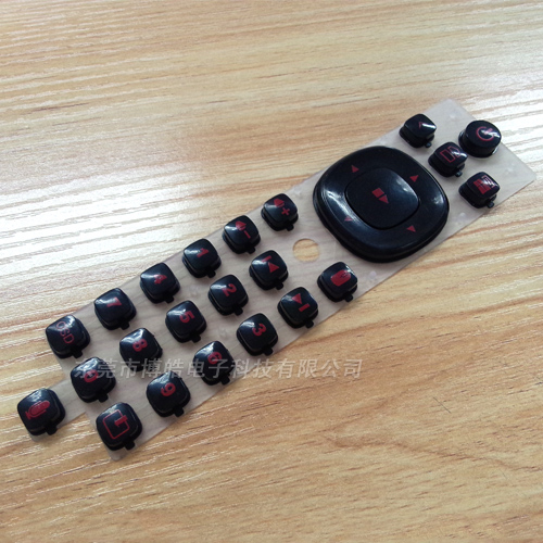 - 產(chǎn)品簡介:本款p+r按鍵是一款遙控器上的p+r按鍵,紅色油墨絲印,透明色底硅膠按鍵。博皓電子專注硅膠按鍵開模定制15年!