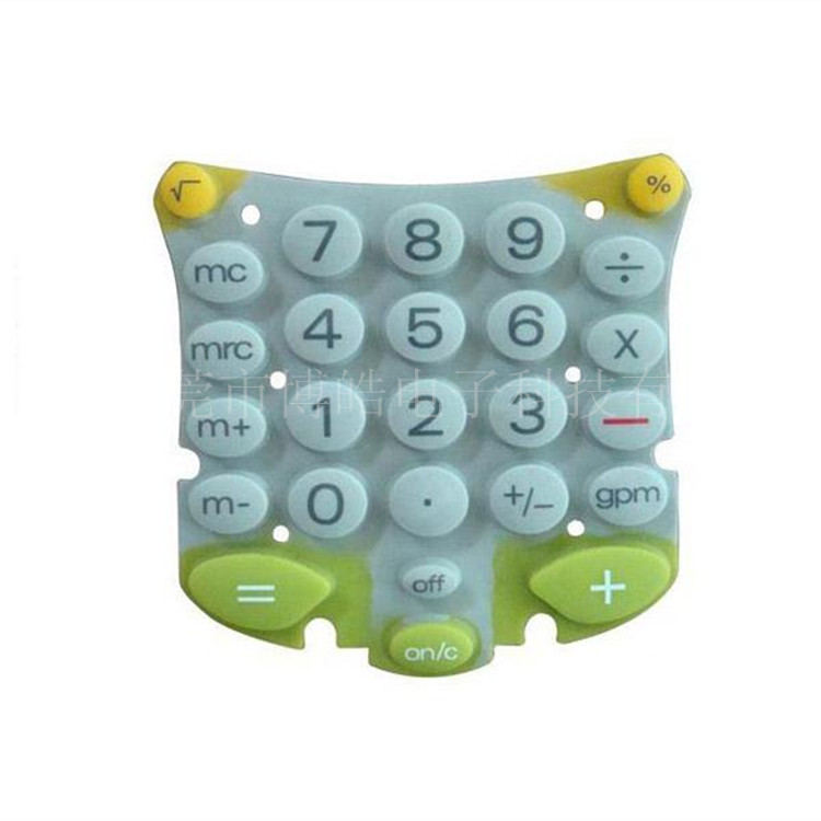 - 產品簡介:1.一款配合市場消費類計算器的按鍵,采用純進口硅膠原材質經過高溫硫化成型制作而成,消費者在使用過程中可以感受到硅膠的柔軟性和絲滑性。 2.使用過程中不會出現(xiàn)塑膠鍵盤的咔嚓咔嚓的聲響。