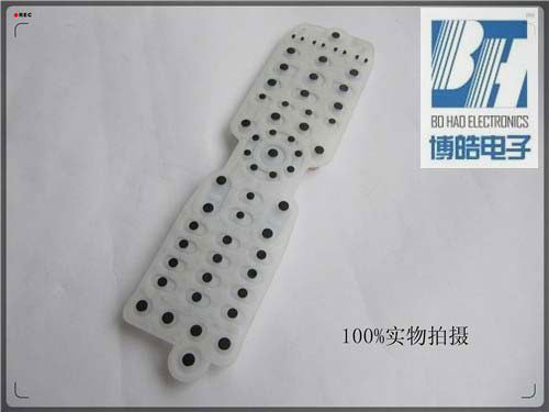 - 這是一款采用硅膠和熒光硅膠做的硅膠遙控器按鍵,產(chǎn)品圖中綠色部分即為熒光效果按鍵,另外還有個更獨特的浮雕效果按鍵,完全不用再印刷,憑手感就可以識別數(shù)字,該款硅膠遙控器按鍵反面還加有導電黑粒,可以起到導電效果。