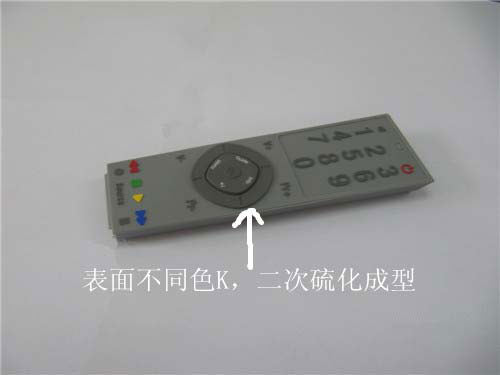 這款產(chǎn)品的生產(chǎn)難點(diǎn)在于表面有一種不同顏色導(dǎo)航鍵,這個(gè)是通過(guò)另外一套色K模具進(jìn)行二次硫化成型制成。